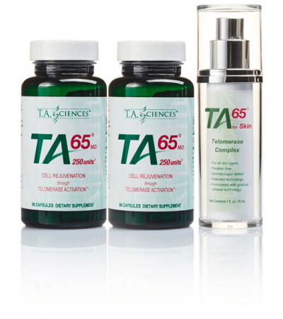 Стартовый набор: 2 упаковки по 90 капсул TA-65MD 250IE и одна упаковка TA-65 for Skin 30 мл