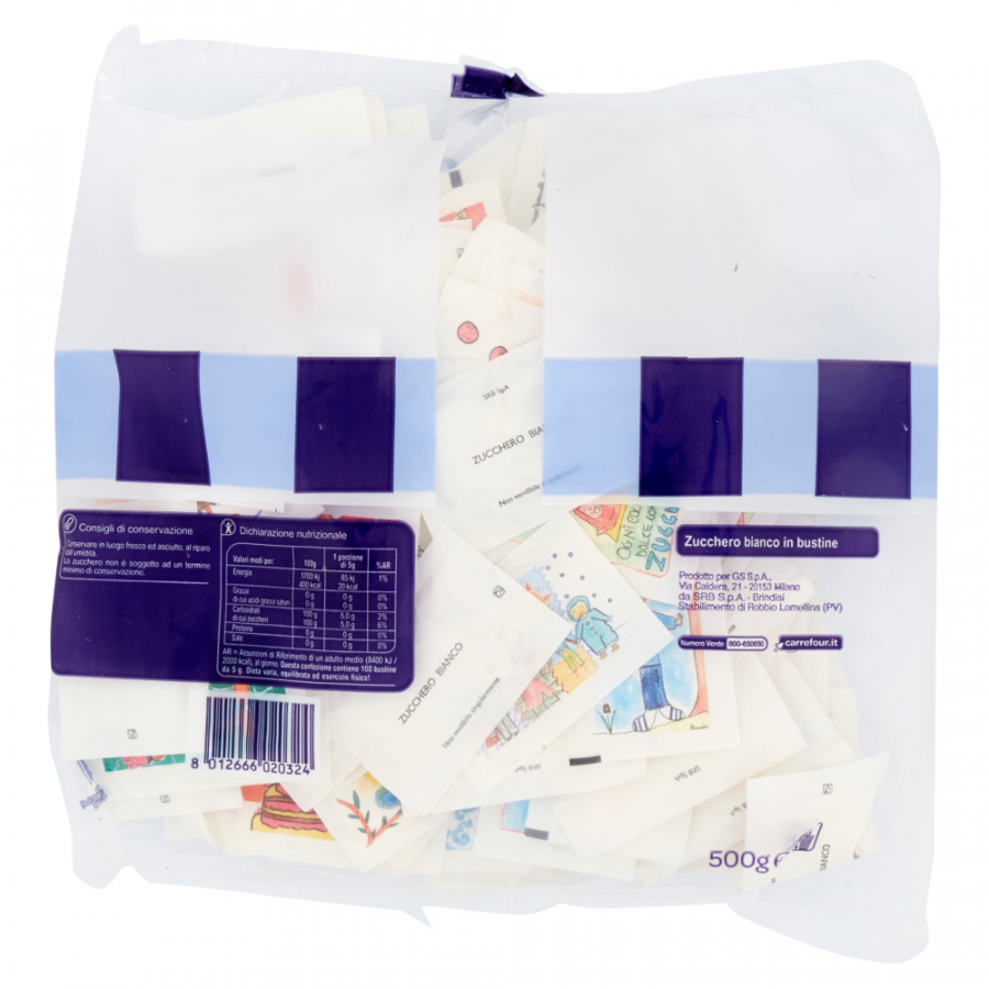 Белый сахар-песок в пакетиках по 5 г (100 пакетиков)