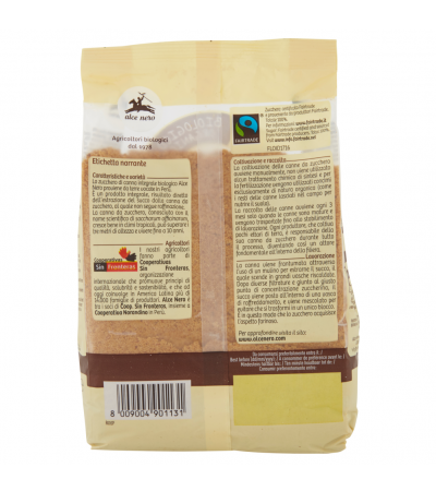 Органический цельный тростниковый сахар Alce Nero поступает из подходящих земель в Перу. Это цельнозерновой продукт, являющийся прямым результатом отжима сока из нерафинированного сахарного тростника. Сахарный тростник, известный под научным названием saccharum officinarum, хорошо растет в тропическом климате, может превышать три метра в высоту и жить до 10 лет. Фермеры - Cooperativas Sin Fronteras являются частью Cooperativas Sin Fronteras, международной организации, которая продвигает принципы качества, здоровья и устойчивости и в которую сегодня входят более 14 000 семей производителей в Латинской Америке. Выращивание сахарного тростника осуществляется вручную, без использования синтетической химической обработки и для удобрения используются исключительно органические удобрения (например, остатки тростника, оставленные в поле для питания почвы). Сбор тростника производится каждые 3 месяца только после того, как он созреет, и его отправляют на перерабатывающий завод. Каждый производитель, который обрабатывает несколько гектаров земли, несет ответственность за свой сахарный тростник на протяжении всего процесса, становясь, таким образом, ключевым игроком в цепочке поставок. Сырье измельчается с помощью мельницы для извлечения сока, который опускается в большие подогреваемые резервуары. После нескольких фильтрований и достижения нужной точки концентрации сахара сок помещается в охлаждающий резервуар и перемешивается, чтобы предотвратить его превращение в единый блок. Так сахар приобретает мучнистый вид.