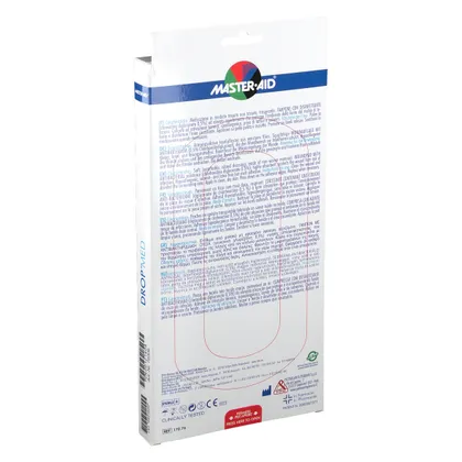 Master-Aid® Drop® Med - это прозрачная повязка из нетканого материала, снабженная впитывающей подушечкой с дезинфицирующим веществом (хлоргексидина диглюконат 0,5%). Гипоаллергенный клей, не содержащий растворителей и натурального латекса.