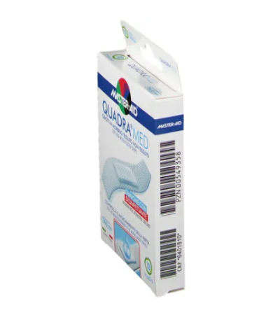 Quadra Med - пластырь из нетканого материала, снабженный впитывающей подушечкой с дезинфицирующим веществом (хлоргексидина диглюконат 0,5%). Гипоаллергенный клей, не содержащий растворителей и натурального латекса. Он имеет эксклюзивную запатентованную эргономичную форму. Используется в основном для лечения ран с повреждением дермы, которые могут зажить вторичным натяжением. Его функция - контролировать микросреду раны и создавать барьер с внешней стороны. Показан при небольших поражениях, в частности, при наличии нежной, чувствительной и раздраженной кожи.