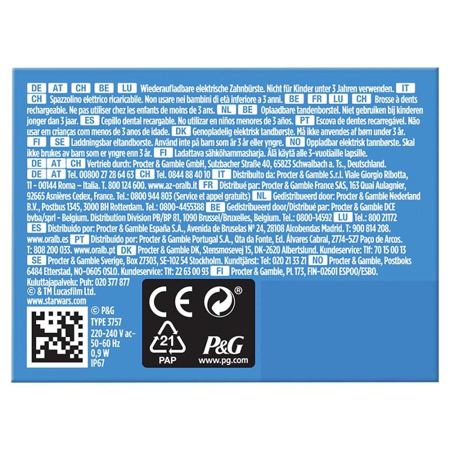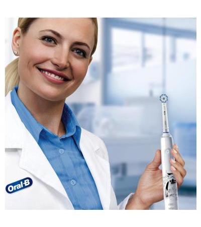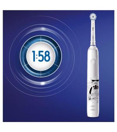Электрическая зубная щетка Star Wars Oral-B Pro3 Junior для детей от 6 лет и старше разработана в сотрудничестве со стоматологами для обеспечения превосходной очистки. Чтобы защитить нежные десны младенцев, она оснащена регулятором давления при чистке десен, который мигает красным светом и снижает скорость чистки, когда обнаруживает, что чистка слишком сильная. Кроме того, круглая головка имеет очень мягкие щетинки. Чтобы сделать чистку еще более увлекательной, ее можно использовать с бесплатным приложением Oral-B Disney Magic Timer. На самом деле, 90% детей чистят зубы дольше с помощью приложения. Это подходящая зубная щетка, которая поможет детям самостоятельно чистить зубы и выработает правильные привычки чистки зубов, которые сохранятся со временем.