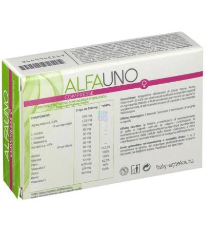 Стимулирует деление и дифференцировку зародышевых клеток дермального сосочка, восстанавливает гормональное равновесие,координирует и регулирует метаболически-энергетические процессы, протекающие в волосяной луковице во всех трех фазах её развития, стимулирует синтез коллагеновых, эластиновых и фибриновых волокон, образующих прочный и упорядоченный межклеточный каркас, улучшает кровоснабжение волосяных луковиц и их обязательных придатков, таких как сальные и потовые железы, расслабляет гладкую мускулатуру вокруг волоса. При длительном применении АльфаУно увеличивается содержание коллагеновых и эластиновых волокон, возрастают гидратация и объем дермы, усиливаются эпидермальный и дермальный морфогенез и микроциркуляция, прекращается выпадение и стимулируется рост волос.