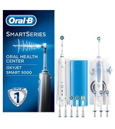 Oral-B Oral Center Spazzolino Elettrico Smart 5000 e Idropulsore Oxyjet con 4 Testine Oxyjet + 6 Testine Di Ricambio