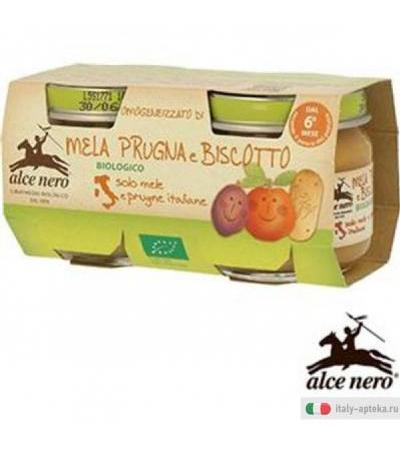 Alce Nero Omogeneizzato alla Mela prugna e Biscotto Biologico 2x80g