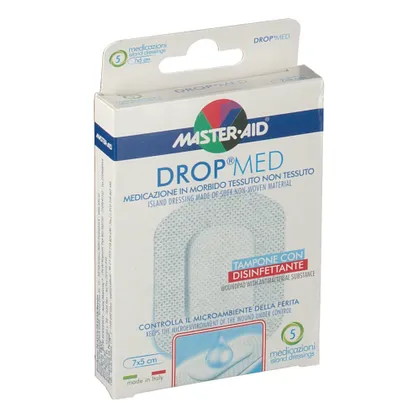MasterAid® Drop® Med - это воздухопроницаемая нетканая повязка, снабженная впитывающей подушечкой с дезинфицирующим веществом (хлоргексидина диглюконат 0,5%), которое контролирует микросреду раны.