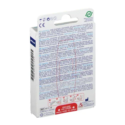 Поддержка: закругленные углы для лучшей совместимости продукта и повышенного комфорта для пользователя. Выполнен из прозрачного полиуретана, полностью непроницаемого для воды и бактерий, но проницаемого для водяного пара. Центральная часть увеличена, чтобы обеспечить максимальную защиту даже возле центральной площадки.