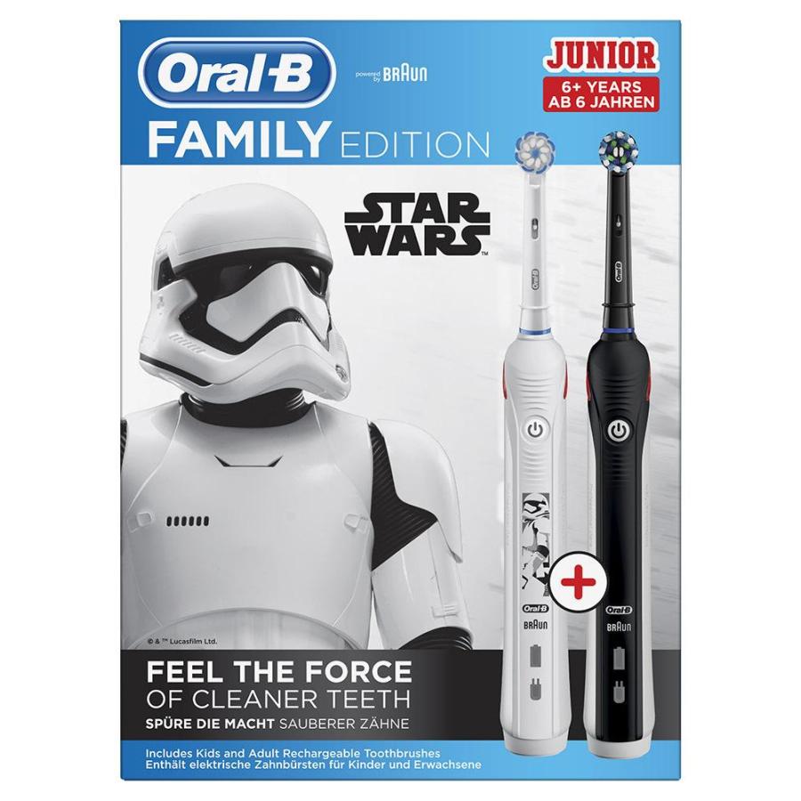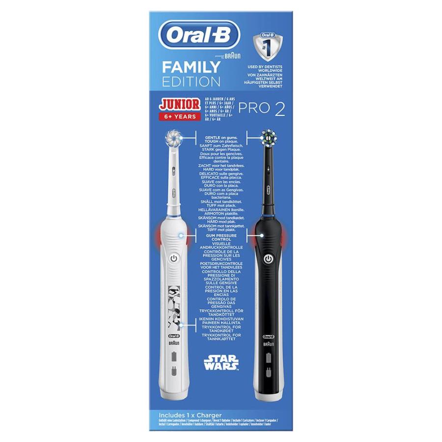 Зубная щетка Oral-B Pro 2 — идеальный выбор для тех, кто хочет перейти на электрическую зубную щетку и улучшить здоровье полости рта. Электрическая зубная щетка Star Wars Oral-B Junior для детей от 6 лет и старше была разработана совместно со стоматологами, чтобы обеспечить тщательную очистку и защиту нежных десен детей; Она имеет контроль давления чистки десен, если чистка слишком сильная, мигает красный индикатор и скорость вращения уменьшается. Кроме того, круглая головка имеет очень мягкие щетинки. Чтобы сделать чистку зубов еще более увлекательной, ее можно использовать с бесплатным приложением Disney Magic Timer от Oral-B, благодаря которому 90% детей чистят зубы дольше с этим приложением. Это подходящая зубная щетка, которая поможет детям самостоятельно чистить зубы и выработает здоровые привычки чистки зубов, которые сохранятся со временем.