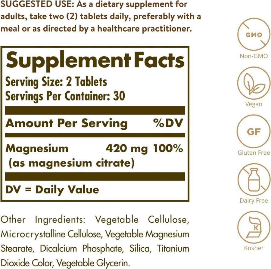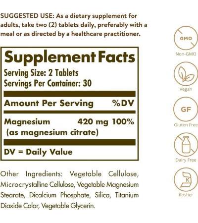 Solgar Magnesium Citrate - это биологически активная добавка, которая содержит высокую дозу магния в форме цитрата.